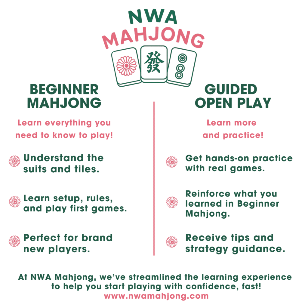 Wednesday 11/19/25 – 6 p.m. – 8 p.m. Guided Open Play for Returning Mahjong Students